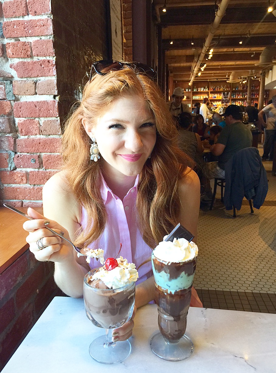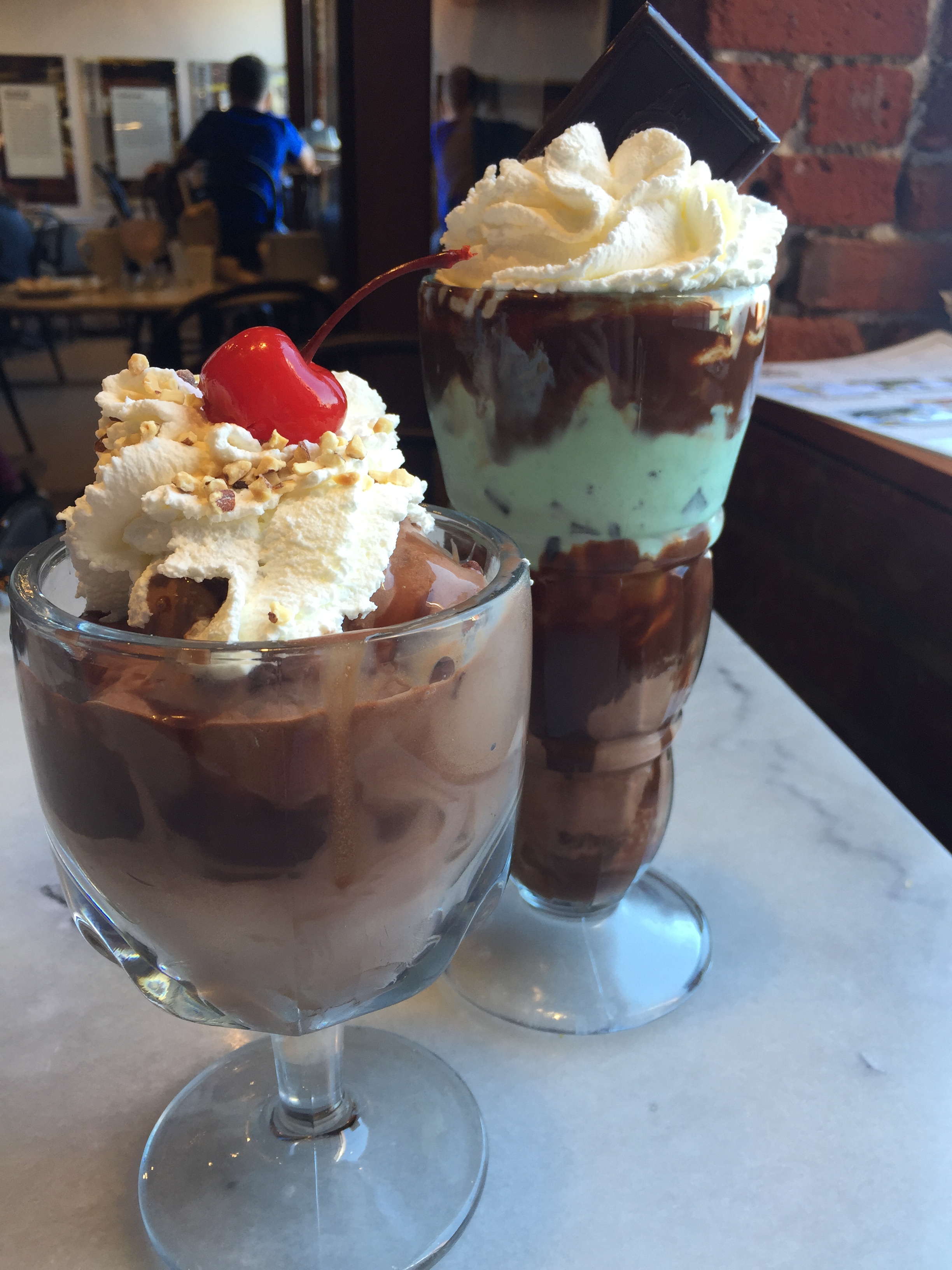 Why not try it all?! I ordered a chocolate fudge sundae and my mom ordered a mint chocolate sundae.