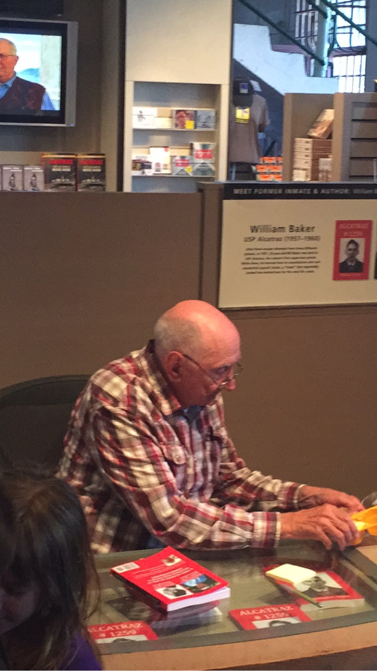 During the tour we had headphones that explained every part of the facility and told some of the prisoners’ stories. We came on a great day because one of the prisoners was doing his book signing. His name is William Baker and he told me that he first went to prison for stealing a car. I wondered how stealing a car could wind him up in Alcatraz. He then told me that after multiple escapes from other prisons he was thrown behind bars here on “the rock”. William said that back then escaping from prison was considered one of the worse crimes possible. After his release from Alcatraz he spent the rest of his life in and out of jail for counterfeiting.