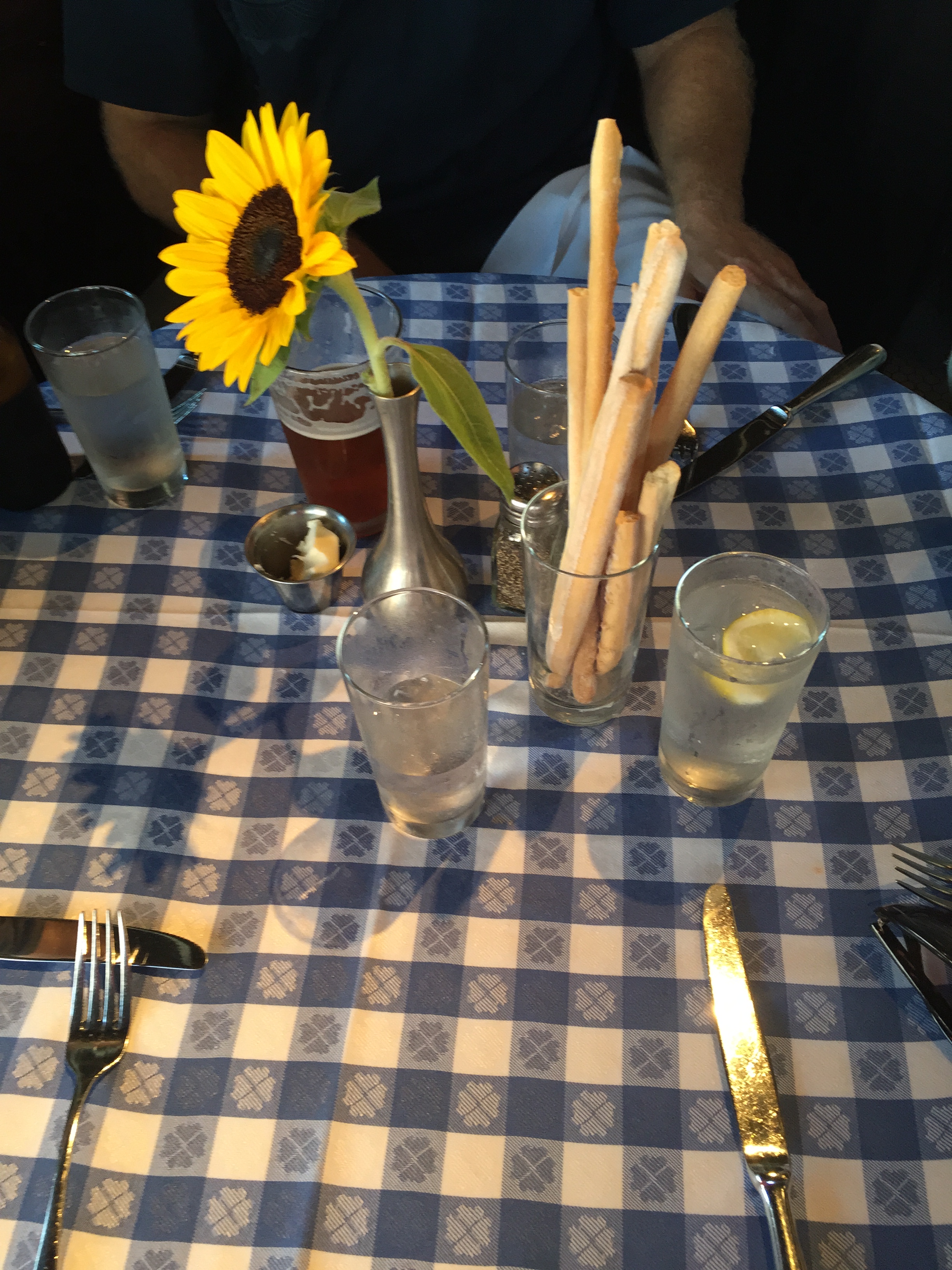 Breadsticks, sunflowers, and a checkered table-cloth – What more could make you feel as if you are on a picnic in the city?