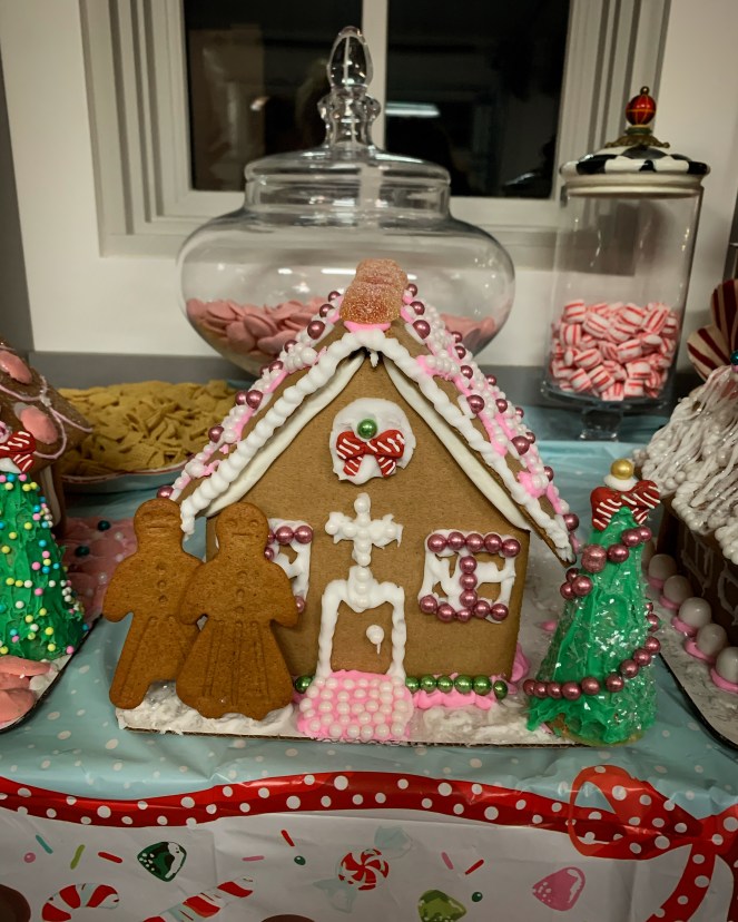 It was such a blast! Everyone had so much fun decorating with the assortment of candies. I thought it was totally worth buying the houses already built because that’s typically the most challenging part of gingerbread house-making. This way, we could all enjoy and focus on the decorating!