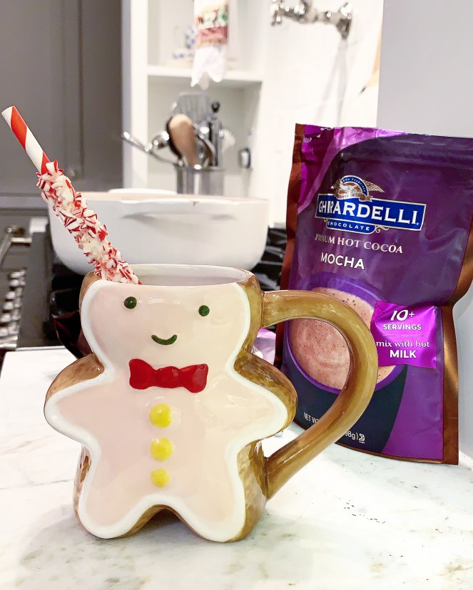 The white chocolate peppermint staws are a must if you are hosting a holiday party. We used these in our cups of hot chocolate. They are from World Market. Click here! They really made the classic winter-time drink even more merry and delicious!