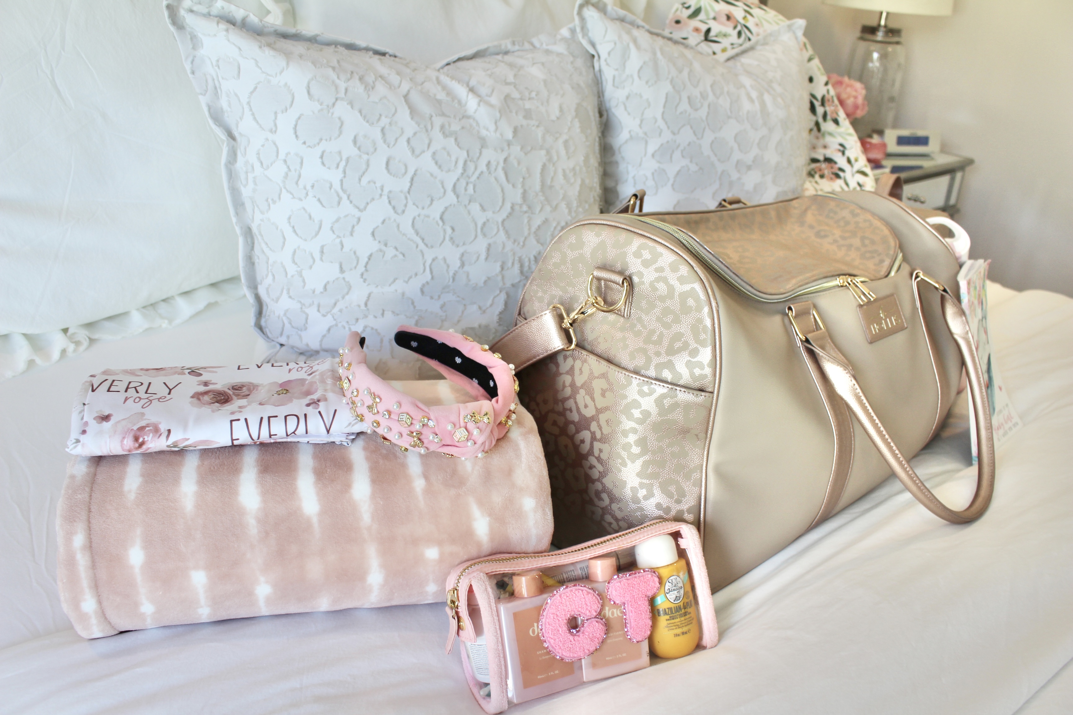 - Makeup Bag – Matching makeup bag with the weekender bag. I love that it comes with a makeup brush holder inside.