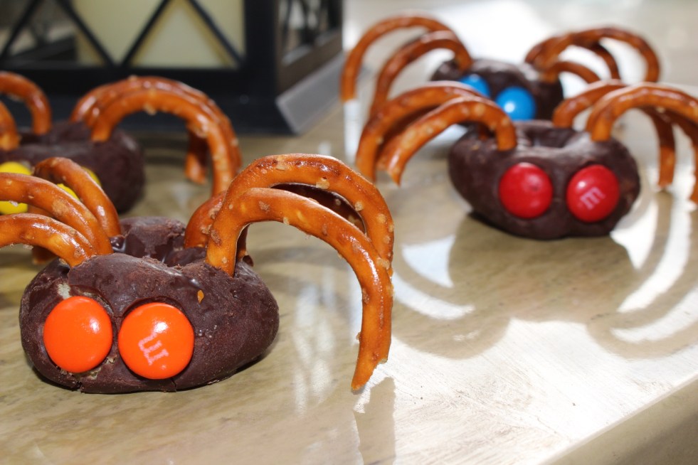 Guess who’s out late eating up rotten pumpkins after a terrifying Halloween night? These donut spiders are my last October treat I’ll be showing you. You’ll need: Chocolate powdered donuts M&Ms for eyes (thin) pretzels for legs THAT’S ALL!! You know me by now … a college student who likes simple yet cute recipes so… Continue reading Creepy Crawlers Eating After Halloween